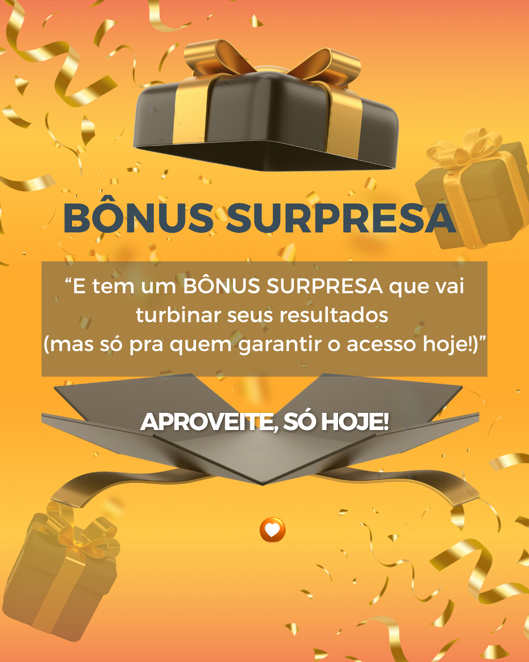 E TEM UM BÔNUS SURPRESA MAIS QUE ESPECIAL QUE VAI TURBINAR SEUS RESULTADOS (MAS SÓ PRA QUEM GARANTIR O ACESSO HOJE) !